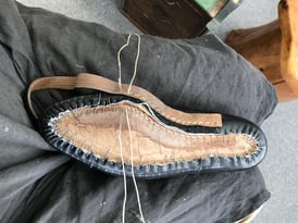 ハンドソーン・ウエルテッド製法のすくい縫いという作業です。