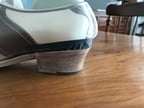 レディースの踵の仕上げです。メンズの靴と違って、踵を細く仕上げています。